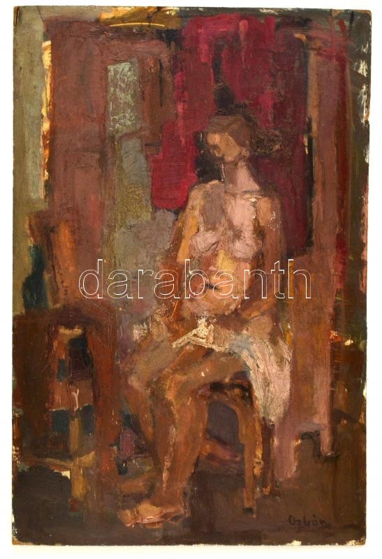 Beschreibung: Orbán jelzéssel: Ülő akt. Olaj, farost, 60×40 cm