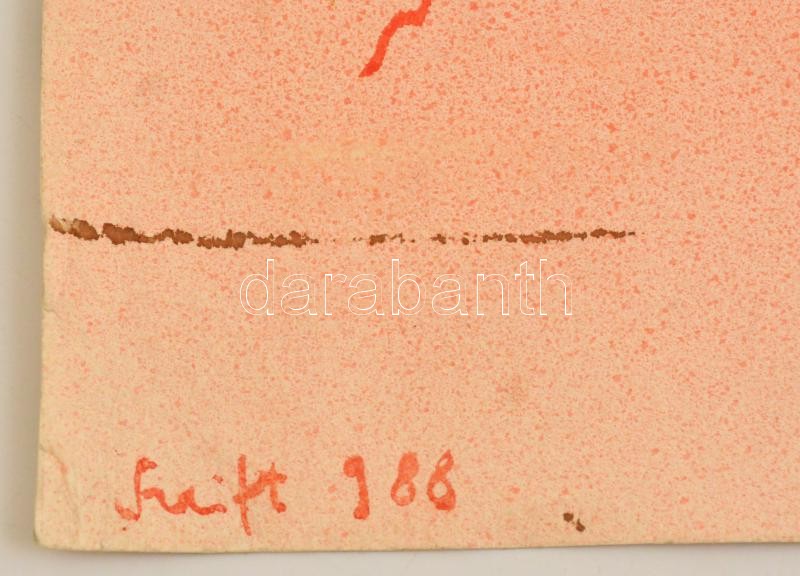 Beschreibung: Szeift Béla (1944-2012): Padlón vagyunk.. Vegyes technika, papír, jelzett, foltos, 39×59 cm