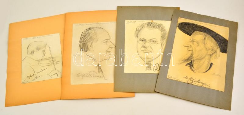 Beschreibung: Tábor jelzéssel: Hírességek portréi, 4 db. Ceruza, papír, jelzett, 26×19 cm