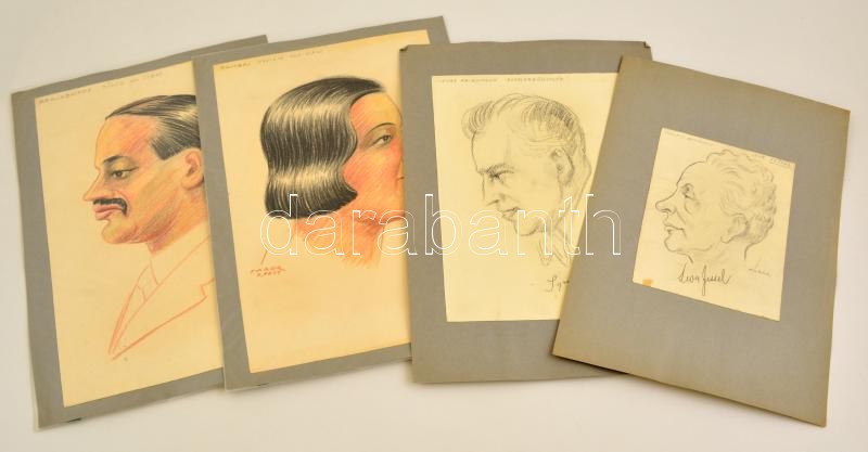 Beschreibung: Tábor jelzéssel: Hírességek portréi, 4 db. Ceruza, papír, jelzett, 26×19 cm