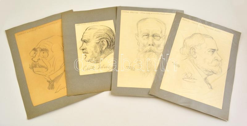 Beschreibung: Tábor jelzéssel: Hírességek portréi, 4 db. Ceruza, papír, jelzett, 26×19 cm