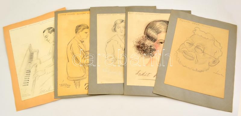 Beschreibung: Tábor jelzéssel: Hírességek portréi, 5 db. Ceruza, papír, jelzett, 29×21 cm