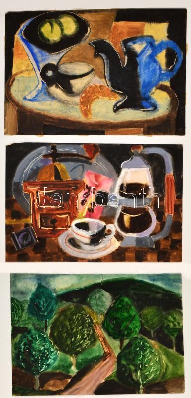 Beschreibung: Tódor jelzéssel: 3 db akvarell, néhányon kis szakadással, 31×43 cm