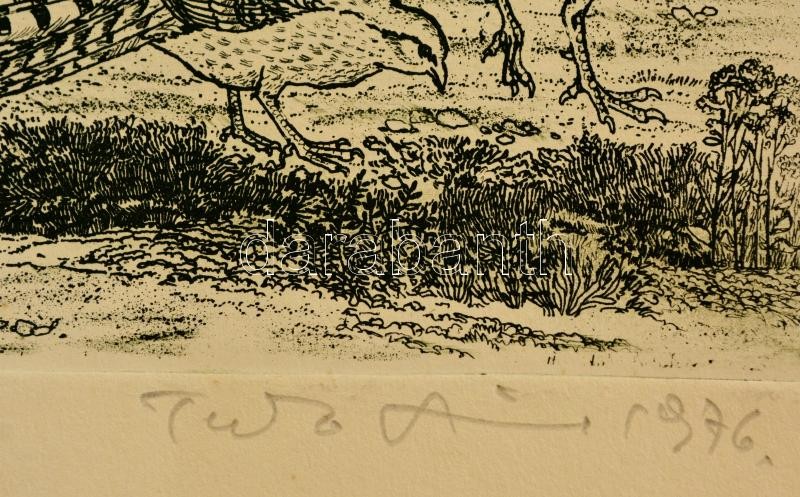 Beschreibung: Tuka László (1924-2007): Madarak. Rézkarc, papír, jelzett, 34×24 cm