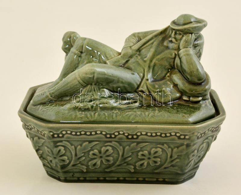 "Pihenő vadász" kerámia doboz, jelzés nélkül, alján mázhibával, 15×11×... https://www.darabanth.com/de/323-Fernauktion/323.0/Andere-Sammelgebiete/Keramiken~500006/Piheno-vadasz-keramia-doboz-jelzes-nelkul-aljan-mazhibaval-15C39711C39711-cm~II1790908