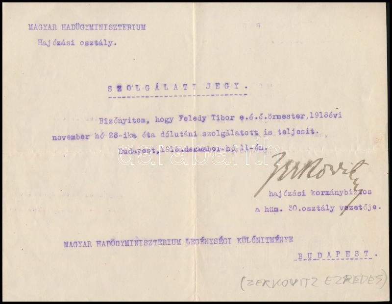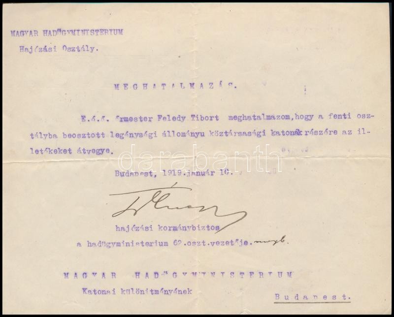 1918-1919 Bp., A Magyar Hadügyminisztérium Hajózási Osztálya által őrm... https://www.darabanth.com/de/323-Fernauktion/323.0/Andere-Sammelgebiete/Militaria~500025/1918-1919-Bp-A-Magyar-Hadugyminiszterium-Hajozasi-Osztalya-altal-ormester-szamara-kiallC3~II1795348
