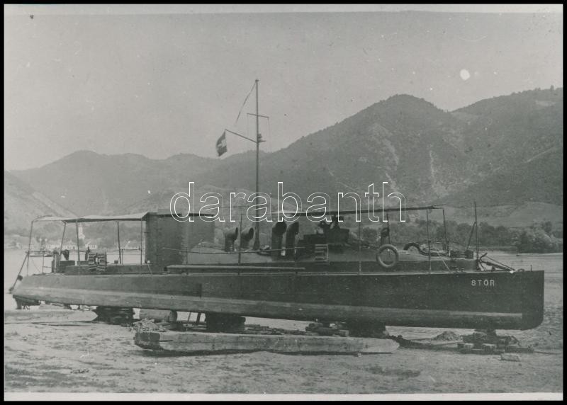 1918 A Stör őrnaszád a parton javításra várva, a Dunai Flottila hajója, az 1980-as években eredeti negatívról előhívott másolat, hátoldalon feliratozva, 12,5×18 cm