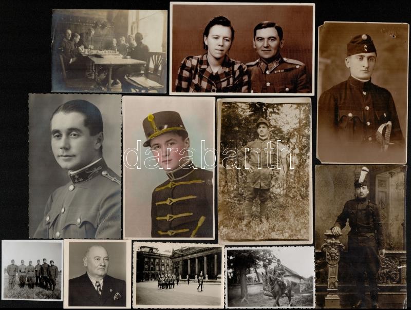 Beschreibung: 38 db vegyes katonai fotó az I. és II. világháborúból, 6×6 és 23×17 cm közötti méretekben