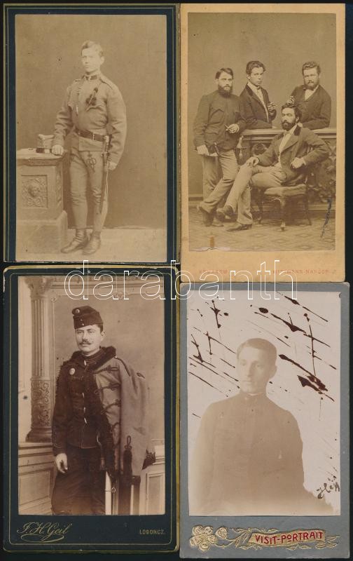 Beschreibung: cca 1890 Vizitkártya méretű fényképek katonákról, 4 db fotó, 11x7 cm