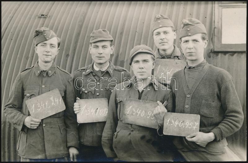 Beschreibung: cca 1939-1945 Munkaszolgálatosok táblákkal, hátoldalon nevekkel, 7,5×11,5 cm