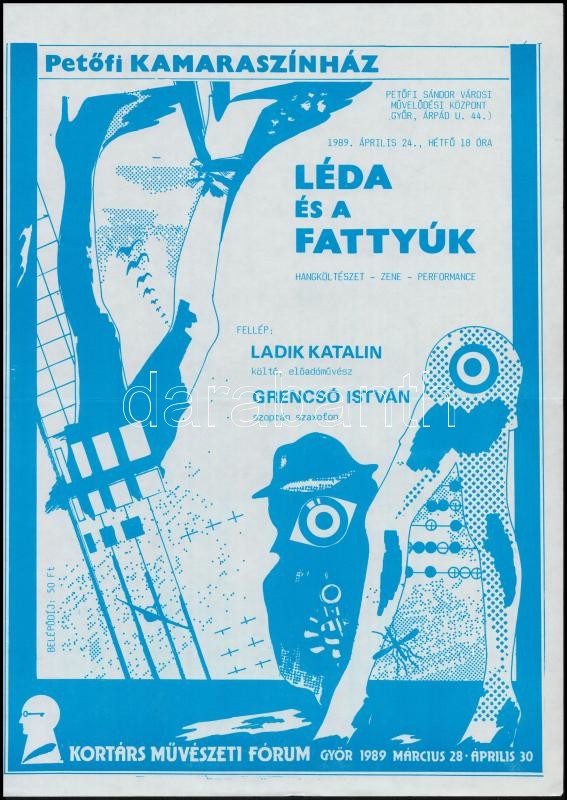 1989 Győr, Petőfi Kamaraszínház Léda és a fattyúk előadás plakt, fellé... https://www.darabanth.com/de/323-Fernauktion/323.0/Andere-Sammelgebiete/Poster~500029/1989-Gyor-Petofi-Kamaraszinhaz-Leda-es-a-fattyuk-eloadas-plakt-fellep-Ladik-Katalin-Gr~II1795940