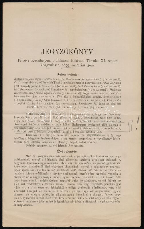 1899 A Balatoni Halászati Társulat ülésének jegyzőkönyve az utolsó év ... https://www.darabanth.com/de/323-Fernauktion/323.0/Andere-Sammelgebiete/Schiffe-Plattensee~500027/1899-A-Balatoni-Halaszati-Tarsulat-ulesenek-jegyzokonyve-az-utolso-ev-mukodesenek-es-a~II1789982