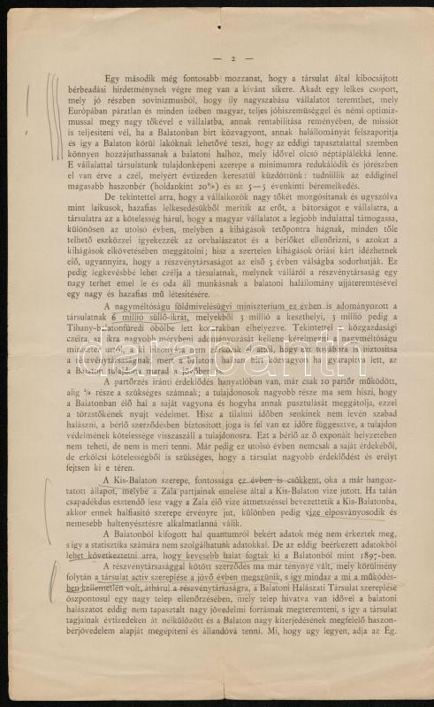 Beschreibung: 1899 A Balatoni Halászati Társulat ülésének jegyzőkönyve az utolsó év működésének és a Balaton állapotleírásának részleteivel 4p.