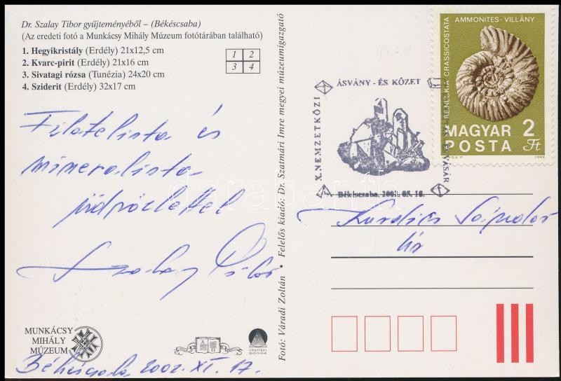 Beschreibung: Dr. Szalay Tibor kőzetgyűjtő aláírása kőzeteket bemutató képeslapon