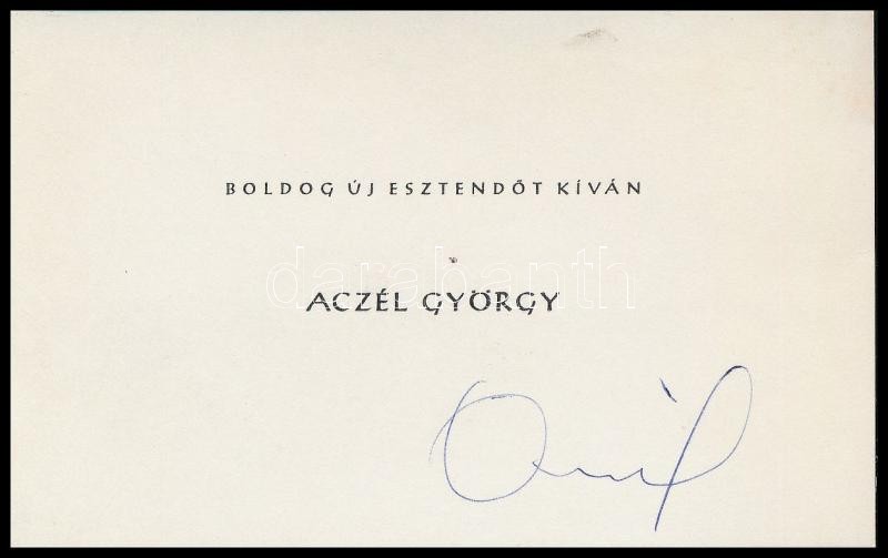 cca 1960-1980 Aczél György (1917-1991) kommunista kulturpolitikus aláírása egy Kádár György (1912-2002) Kossuth-díjas festő, grafikus, főiskolai tanár részére küldött üdvözlő kártyán.
