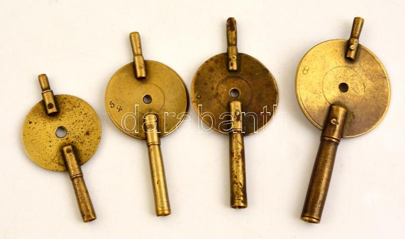 4 db régi nagyméretű réz órakulcs, h: 8 cm és 6 cm közötti méretben https://www.darabanth.com/de/323-Fernauktion/323.0/Andere-Sammelgebiete/Uhren~500009/4-db-regi-nagymeretu-rez-orakulcs-h-8-cm-es-6-cm-kozotti-meretben~II1793732