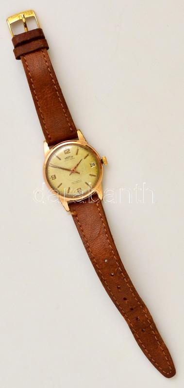 Beschreibung: Prefis automata óra, dátumkijelzővel, bőr szíjjal, működik, d: 3,5 cm