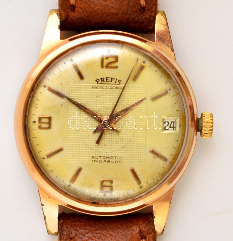 Prefis automata óra, dátumkijelzővel, bőr szíjjal, működik, d: 3,5 cm https://www.darabanth.com/de/323-Fernauktion/323.0/Andere-Sammelgebiete/Uhren~500009/Prefis-automata-ora-datumkijelzovel-bor-szijjal-mukodik-d-3-5-cm~II1796854