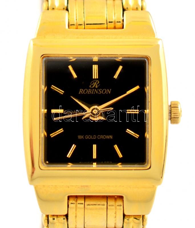 Beschreibung: Robinson női karóra, arany (Au.) 18 K fejjel, aranyozott acél tok és szíj, működik