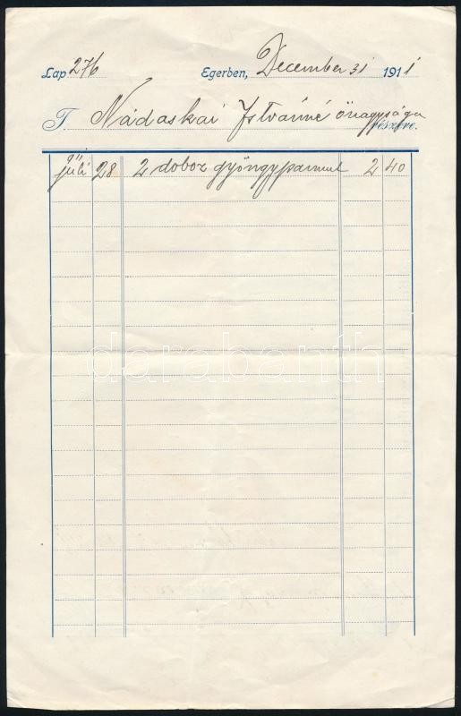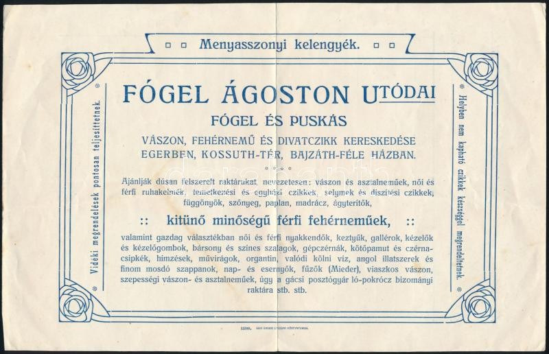 1911 Eger, Fogel Ágoston díszes számla, a hátoldalán hirdetéssel, fejl... https://www.darabanth.com/de/323-Fernauktion/323.0/Andere-Sammelgebiete/Werbungen~500020/1911-Eger-Fogel-Agoston-diszes-szamla-a-hatoldalan-hirdetessel-fejleces-boritekkal~II1789986