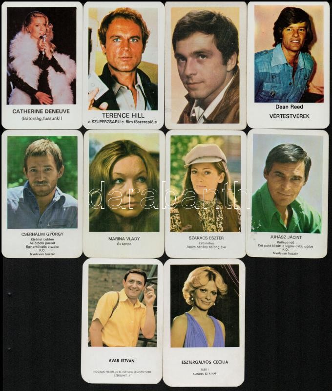 Beschreibung: 1970-1983 10 db színészeket ábrázoló kártyanaptár