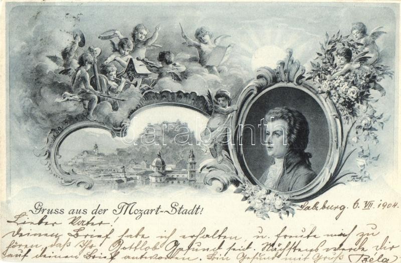 1904 Salzburg (Mozart-Stadt), Mozart, angels, floral (cut) https://www.darabanth.com/de/323-Fernauktion/323.0/Ansichtskarten/Osterreich~2500017/1904-Salzburg-Mozart-Stadt-Mozart-angels-floral-cut~II1796728