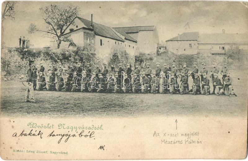 1898 Nagyvárad, Oradea; laktanya katonák csoportképével / military bar... https://www.darabanth.com/de/323-Fernauktion/323.0/Ansichtskarten/Siebenburgen~2500006/1898-Nagyvarad-Oradea-laktanya-katonak-csoportkepevel-military-barracks-with-Kuk-soldiers~II1789332