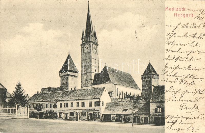 1908 Medgyes, Mediasch, Medias; tér, üzletek / square and shops https://www.darabanth.com/de/323-Fernauktion/323.0/Ansichtskarten/Siebenburgen~2500006/1908-Medgyes-Mediasch-Medias-ter-uzletek-square-and-shops~II1795825