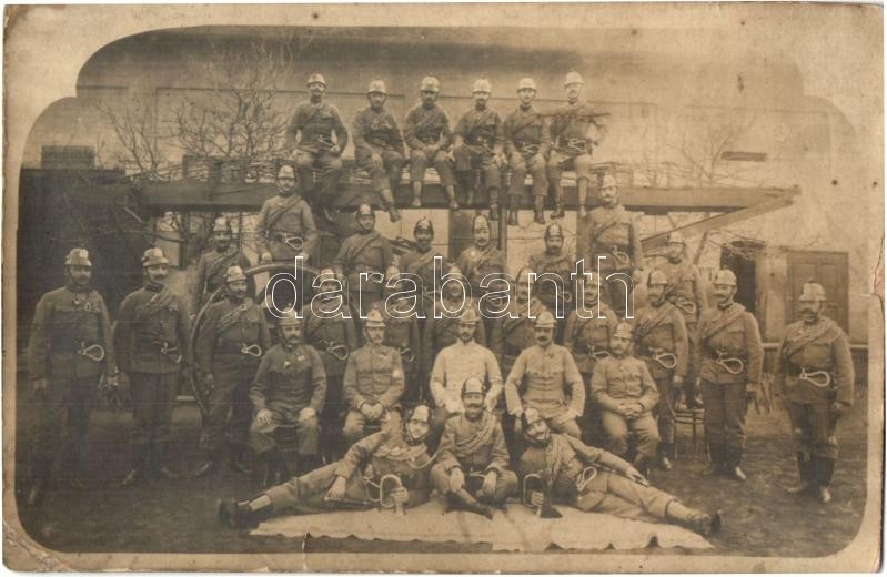 Beschreibung: 1913 Nagyvárad, Oradea; Vilmos tűzoltó laktanya, tűzoltók csoportképe / brigada de pompieri / fire brigade barracks, firefighters' group photo (EK)