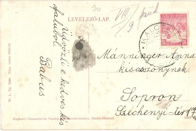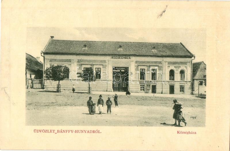 Beschreibung: Bánffyhunyad, Huedin; Községháza, Stern Mór, Diamantstein Nándor üzlete és saját kiadása. W. L. Bp. 7086. / town hall, publisher's shop