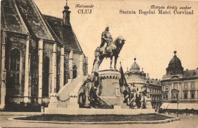 Kolozsvár, Cluj; Mátyás király szobor / statue, "Kolozsvár visszatért"... https://www.darabanth.com/de/323-Fernauktion/323.0/Ansichtskarten/Siebenburgen~2500006/Kolozsvar-Cluj-Matyas-kiraly-szobor-statue-Kolozsvar-visszatert-SoStpl~II1795371