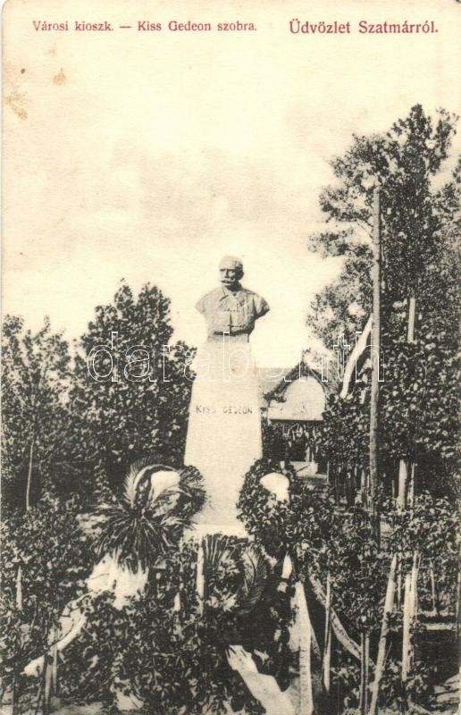 Szatmárnémeti, Szatmár, Satu Mare; Városi kioszk, Kiss Gedeon szobor. ... https://www.darabanth.com/de/323-Fernauktion/323.0/Ansichtskarten/Siebenburgen~2500006/Szatmarnemeti-Szatmar-Satu-Mare-Varosi-kioszk-Kiss-Gedeon-szobor-Cseplak-Balintne-kiada~II1794860