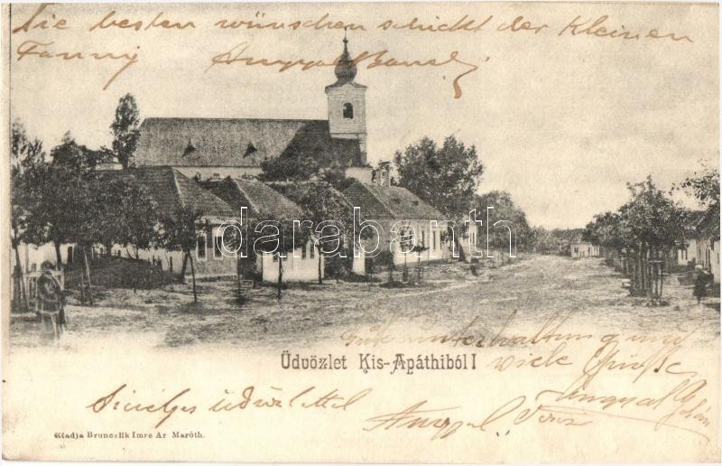 Beschreibung: Zsitvaapáti, Kisapáti, Knezics, Opatovce nad Zitavou, Zitavany; Fő utca, templom. Kiadja Brunczlik Imre / main street, church (r)