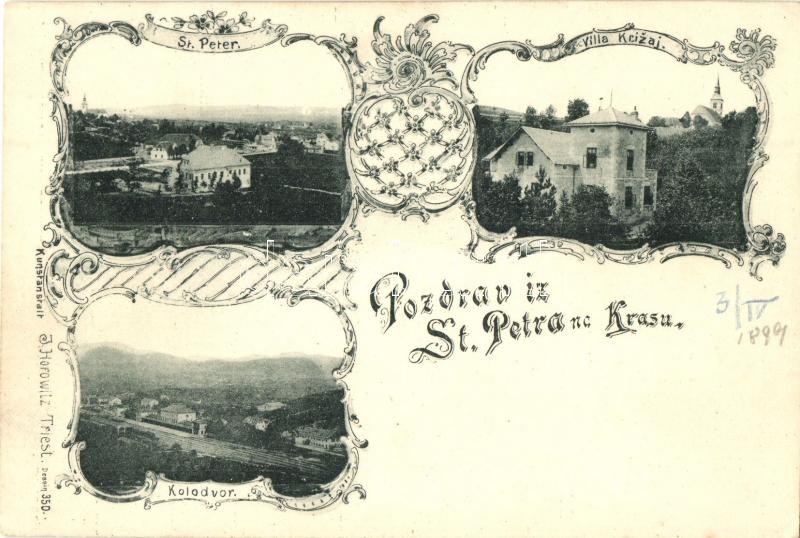 1899 Pivka, St. Petra na Krasu, San Pietro del Carso, St. Peter in Krain; Villa Kcizaj, Kolodvor / villa, railway station. Kunstanstalt J. Horowitz. Art Nouveau (Rb)