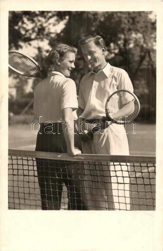 Couple playing tennis. Amag 67811. https://www.darabanth.com/de/323-Fernauktion/323.0/Ansichtskarten/Sport~2500091/Couple-playing-tennis-Amag-67811~II1795564
