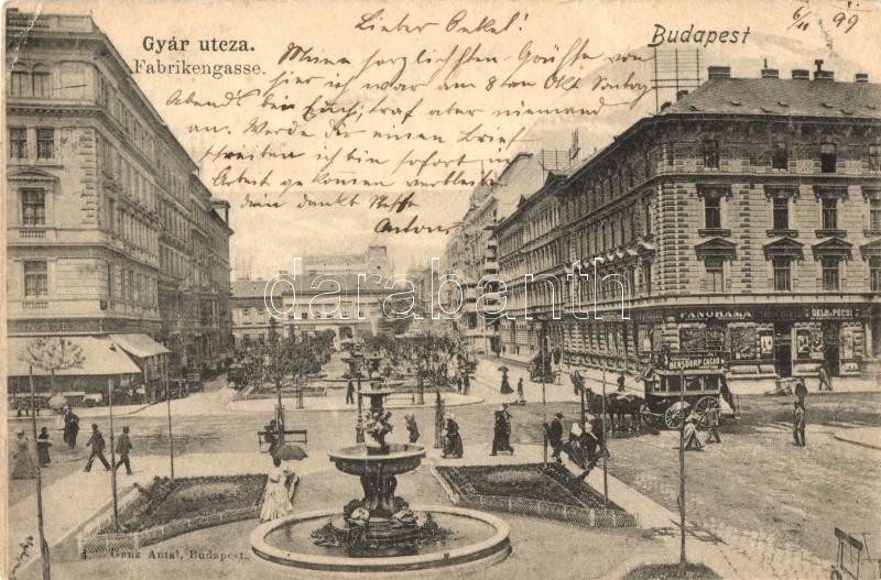 1899 Budapest VI. Gyár utca, lóvasút, üzletek, étterem, kiadja Ganz An... https://www.darabanth.com/de/323-Fernauktion/323.0/Ansichtskarten/Ungarn~2500005/1899-Budapest-VI-Gyar-utca-lovasut-uzletek-etterem-kiadja-Ganz-Antal-EB~II1789968