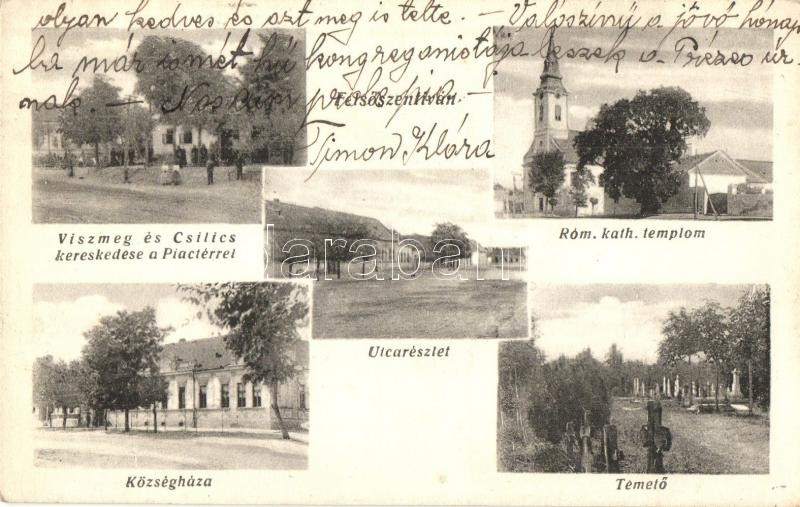 Felsőszentiván, utcakép, községháza, temető, Római katolikus templom, ... https://www.darabanth.com/de/323-Fernauktion/323.0/Ansichtskarten/Ungarn~2500005/Felsoszentivan-utcakep-kozseghaza-temeto-Romai-katolikus-templom-Piac-ter-Viszmeg-es~II1794507