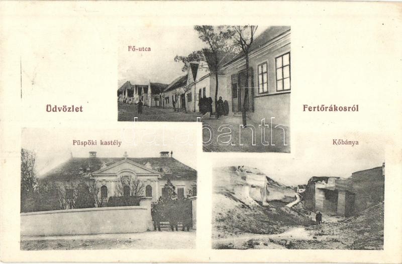 Fertőrákos, Kroisbach; Fő utca, Püspöki kastély, Kőbánya. Bokor fivére... https://www.darabanth.com/de/323-Fernauktion/323.0/Ansichtskarten/Ungarn~2500005/Fertorakos-Kroisbach-Fo-utca-Puspoki-kastely-Kobanya-Bokor-fiverek-kiadasa-ragasztC3~II1794343