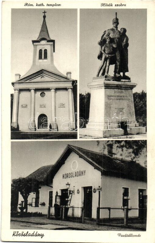 Körösladány, Római katolikus templom, Hősök szobra, Vasútállomás. Czib... https://www.darabanth.com/de/323-Fernauktion/323.0/Ansichtskarten/Ungarn~2500005/Korosladany-Romai-katolikus-templom-Hosok-szobra-Vasutallomas-Czibulka-Bela-kiadasa~II1790553