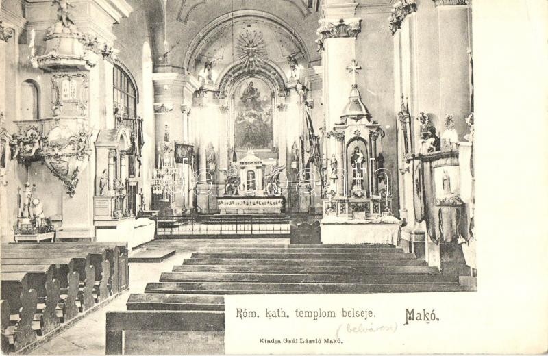Makó, Római katolikus templom, belső. Kiadja Gaál László (EK) https://www.darabanth.com/de/323-Fernauktion/323.0/Ansichtskarten/Ungarn~2500005/Mako-Romai-katolikus-templom-belso-Kiadja-Gaal-Laszlo-EK~II1794322