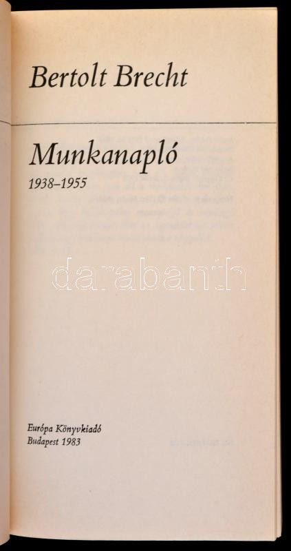 Bertolt Brecht: Munkanapló. 1938-1955. Válogatta és fordította: Eörsi István. A utószót Almási Miklós írta.