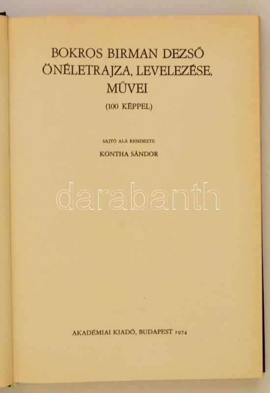 Kontha Sándor (szerk.): Bokros Birman Dezső önéletrajza, levelezése, m... https://www.darabanth.com/de/323-Fernauktion/323.0/Bucher/Bucher-Architektur-Kunst~1500007/Kontha-Sandor-szerk-Bokros-Birman-Dezso-oneletrajza-levelezese-muvei-100-keppel-Bp-~II1791854