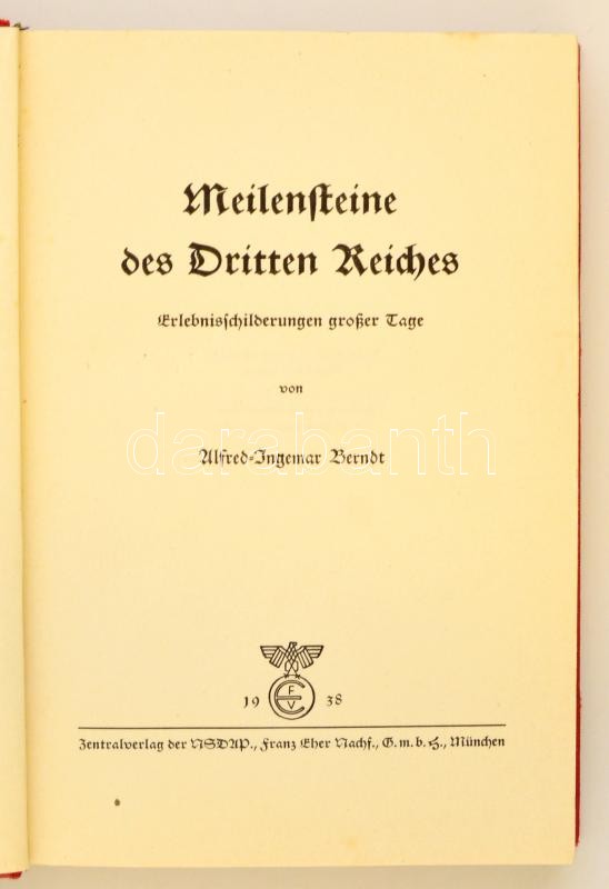 Alfred-Ingemar Berndt: Meilensteine des Dritten Reiches. München, 1938... https://www.darabanth.com/de/323-Fernauktion/323.0/Bucher/Bucher-Geschichte~1500005/Alfred-Ingemar-Berndt-Meilensteine-des-Dritten-Reiches-Munchen-1938-NSDAP-Nemet-nyelven-KiadC3~II1790143