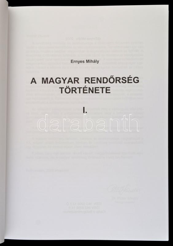 Ernyes Mihály: A magyar rendőrség története. I. kötet. Budapest, 2002, Belügyminisztérium. Kiadói műbőr-kötésben, kiadói papír védőborítóban. Jó állapotban.