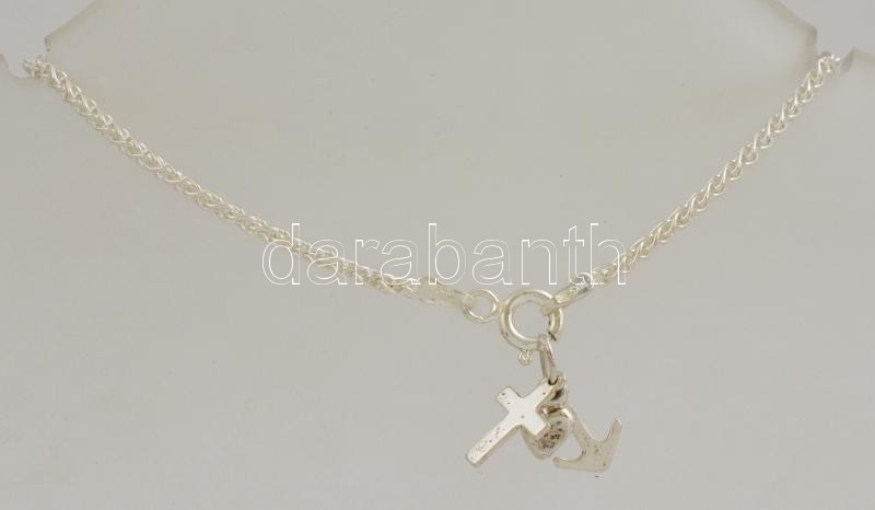 Beschreibung: Ezüst(Ag) fantáziaszemes karkötő, 3 kis függővel, jelzett, h: 18 cm, nettó: 2,7 g