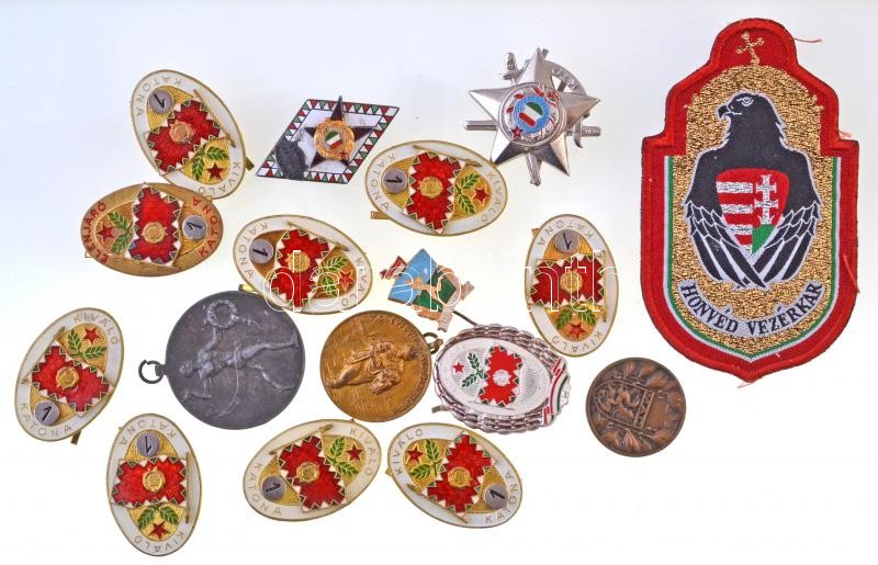 Beschreibung: 17db-os vegyes militária tétel, közte leginkább ,,Kiváló katona" jelvények, néhány emlékérem és egy ,,Honvéd Vezérkar" textil felvarró T:2