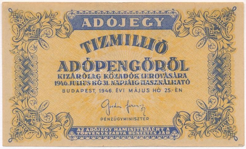 Beschreibung: 1946. 10.000.000AP vízjeles papíron, fordított címer T:II