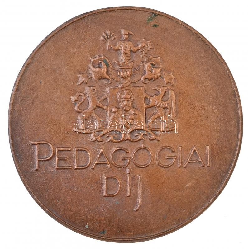 DN "Pedagógia Díj" kétoldalas öntött Br emlékérem, két darabból álló bőrtokban. Szign.: VE (102mm) T:1- kis patina
