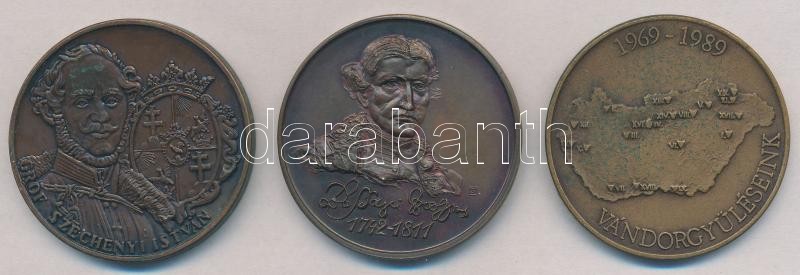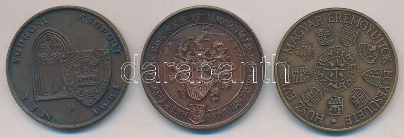 Bognár György (1944-) 1989. "20 éves a Magyar Éremgyűjtők Egyesülete / 1969-1989 Vándorgyűléseink" Br emlékérem (42,5mm) + Renner Kálmán (1927-1994) 1991. "Gróf Széchenyi István 1791-1860 / MÉE XXI. Vándorgyűlése Sopron 1991. augusztus 3-4" Br emlékérem (42,5mm) T:2 kis patina