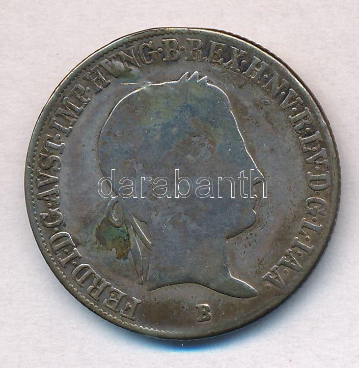 Beschreibung: 1844B 20kr Ag "V. Ferdinánd" T:3 fülnyom, fo., patina